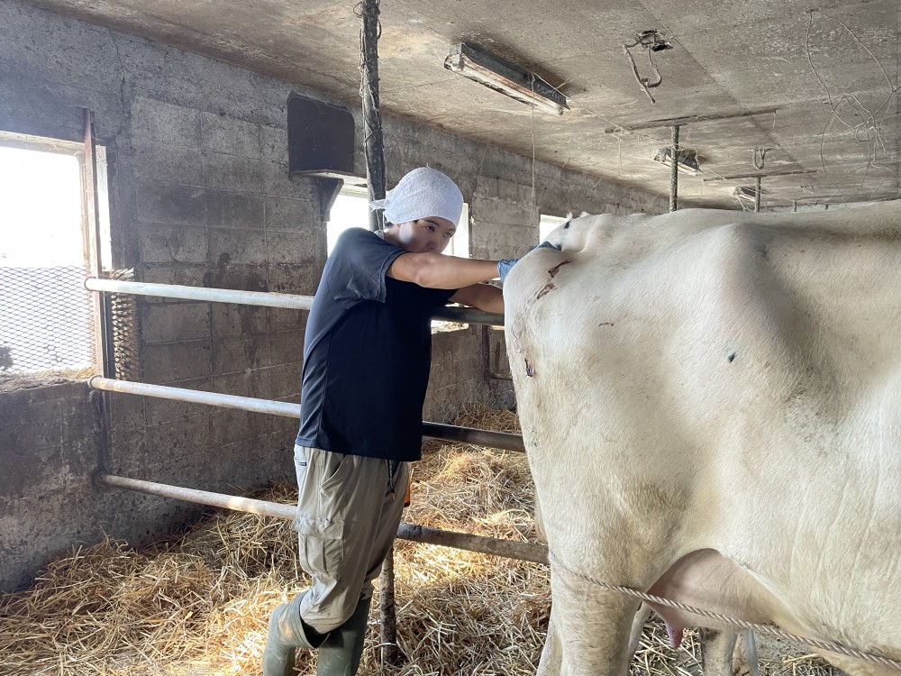 牧場それぞれの日常のお仕事をお手伝いしてます。基本的には飼養管理、搾乳、掃除などを行います。免許を所有している従業員は、ホイールローダーやトラクターを使って作業することもあります。